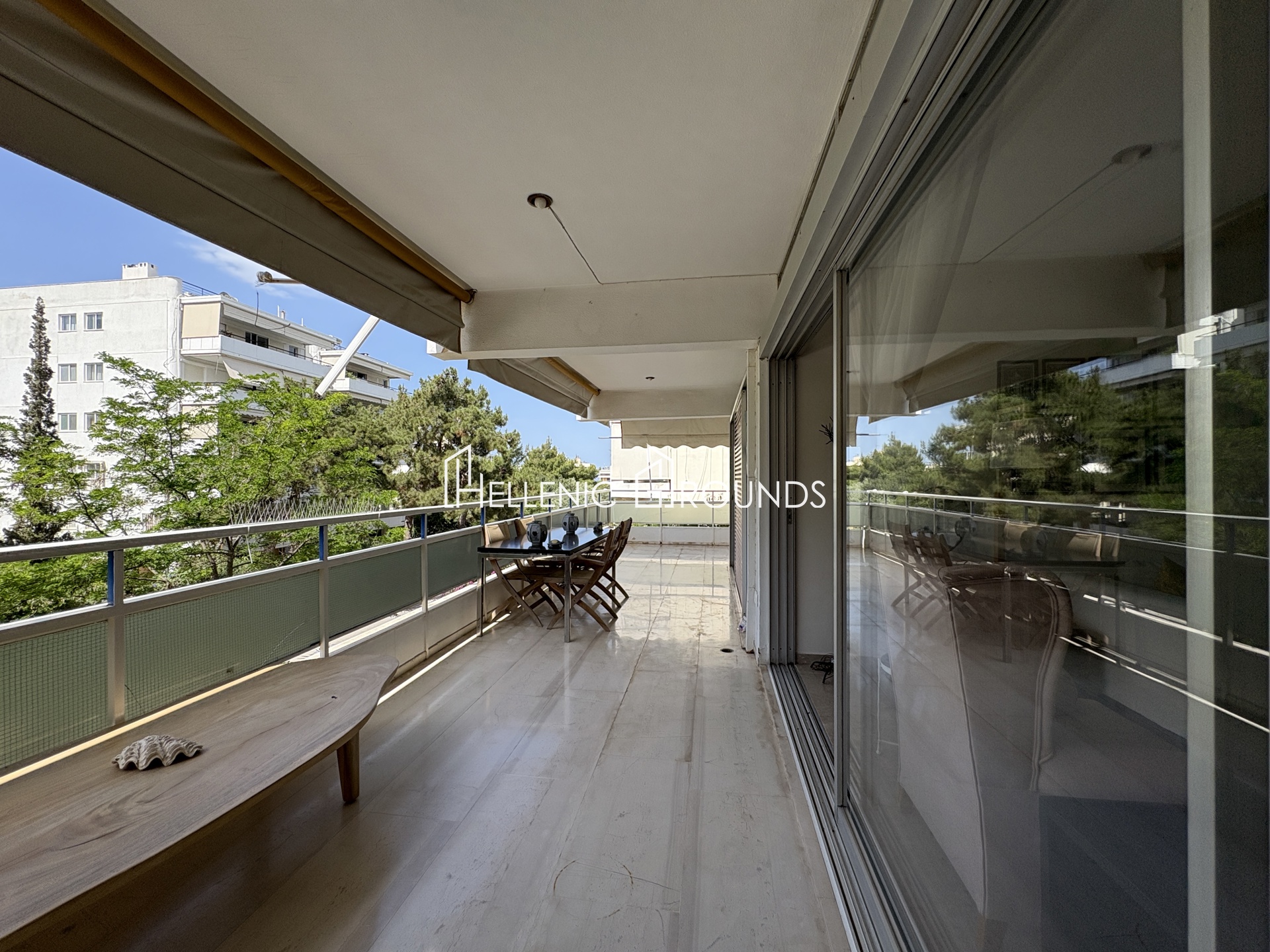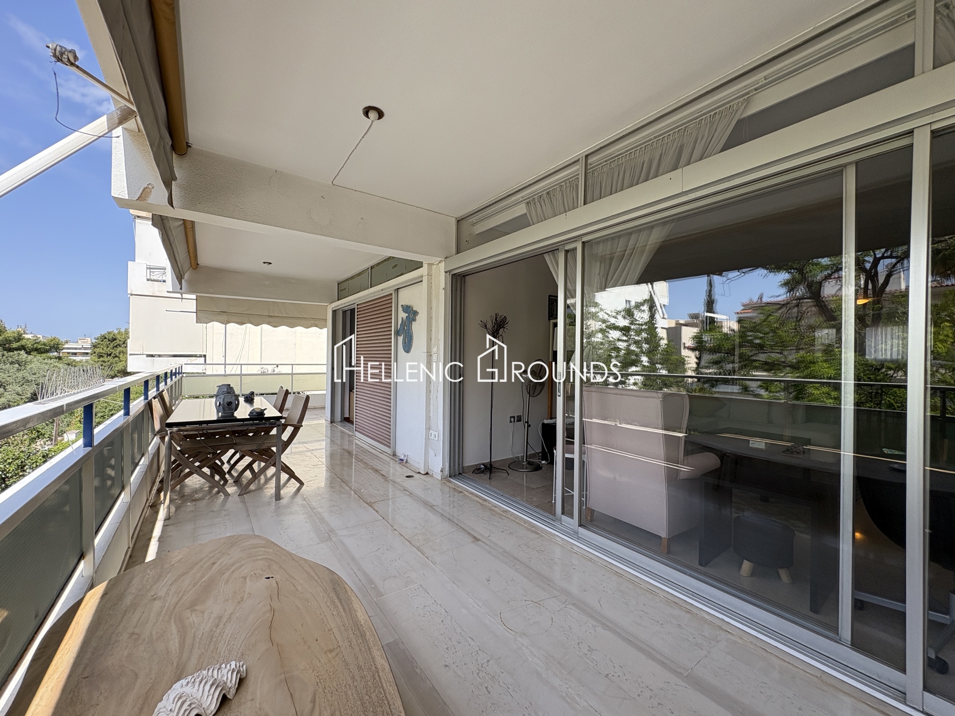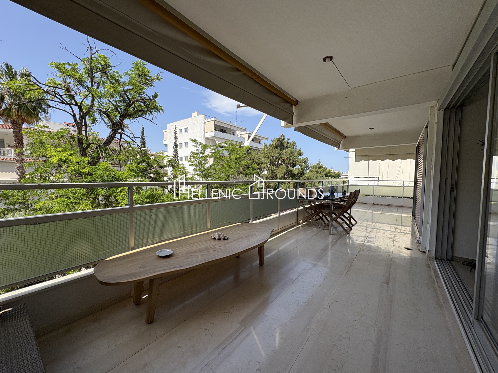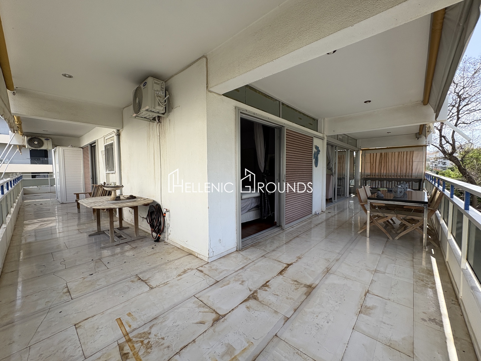 Located in the heart of downtown Glyfada, this spacious 2nd-floor apartment spans 133 sqm and offers great potential for renovation. The layout includes three bedrooms, two full bathrooms, an open-plan kitchen, and a wrap-around balcony of approximately 60 sqm, ideal for outdoor lounging and entertaining.