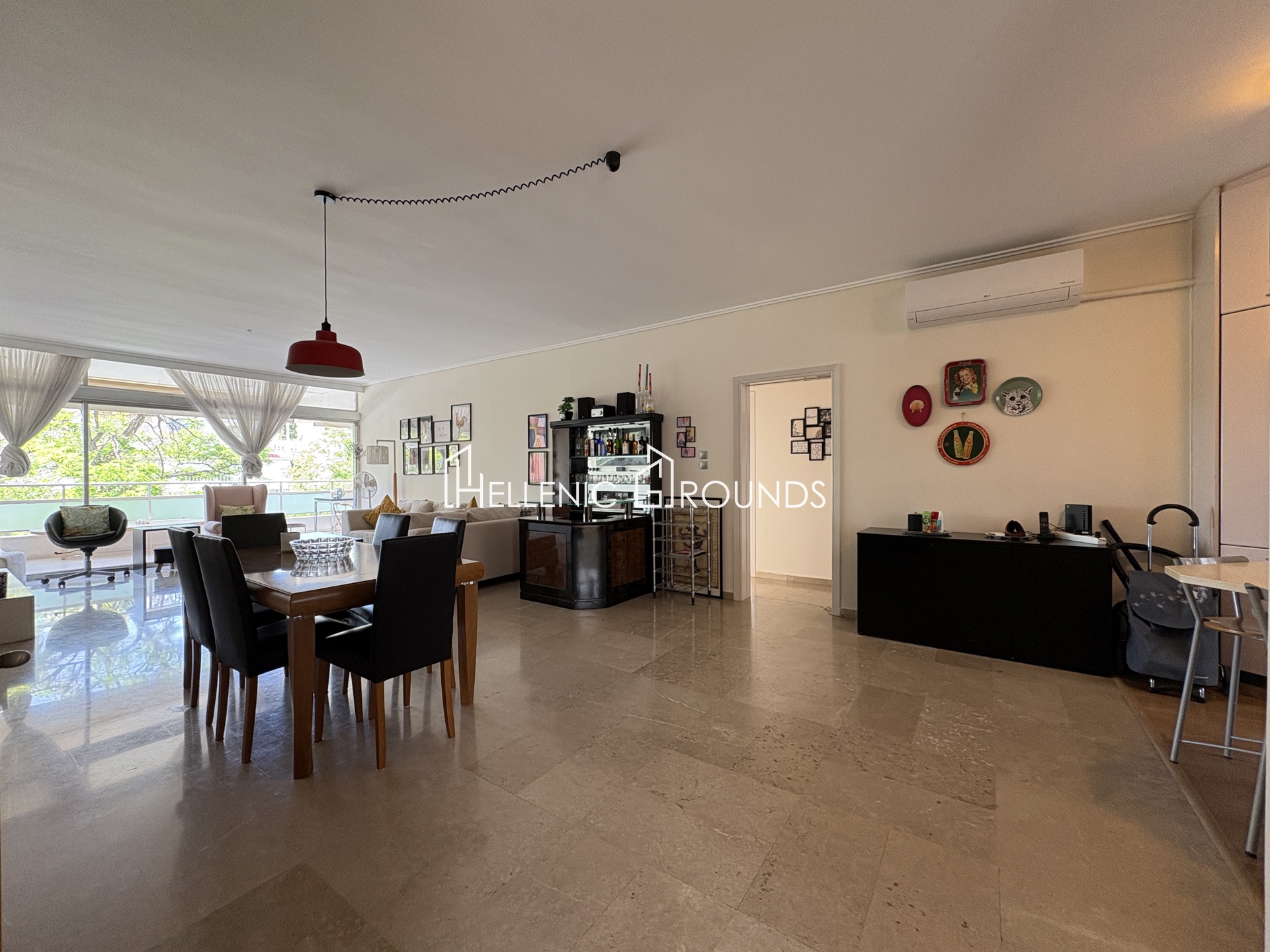 Located in the heart of downtown Glyfada, this spacious 2nd-floor apartment spans 133 sqm and offers great potential for renovation. The layout includes three bedrooms, two full bathrooms, an open-plan kitchen, and a wrap-around balcony of approximately 60 sqm, ideal for outdoor lounging and entertaining.