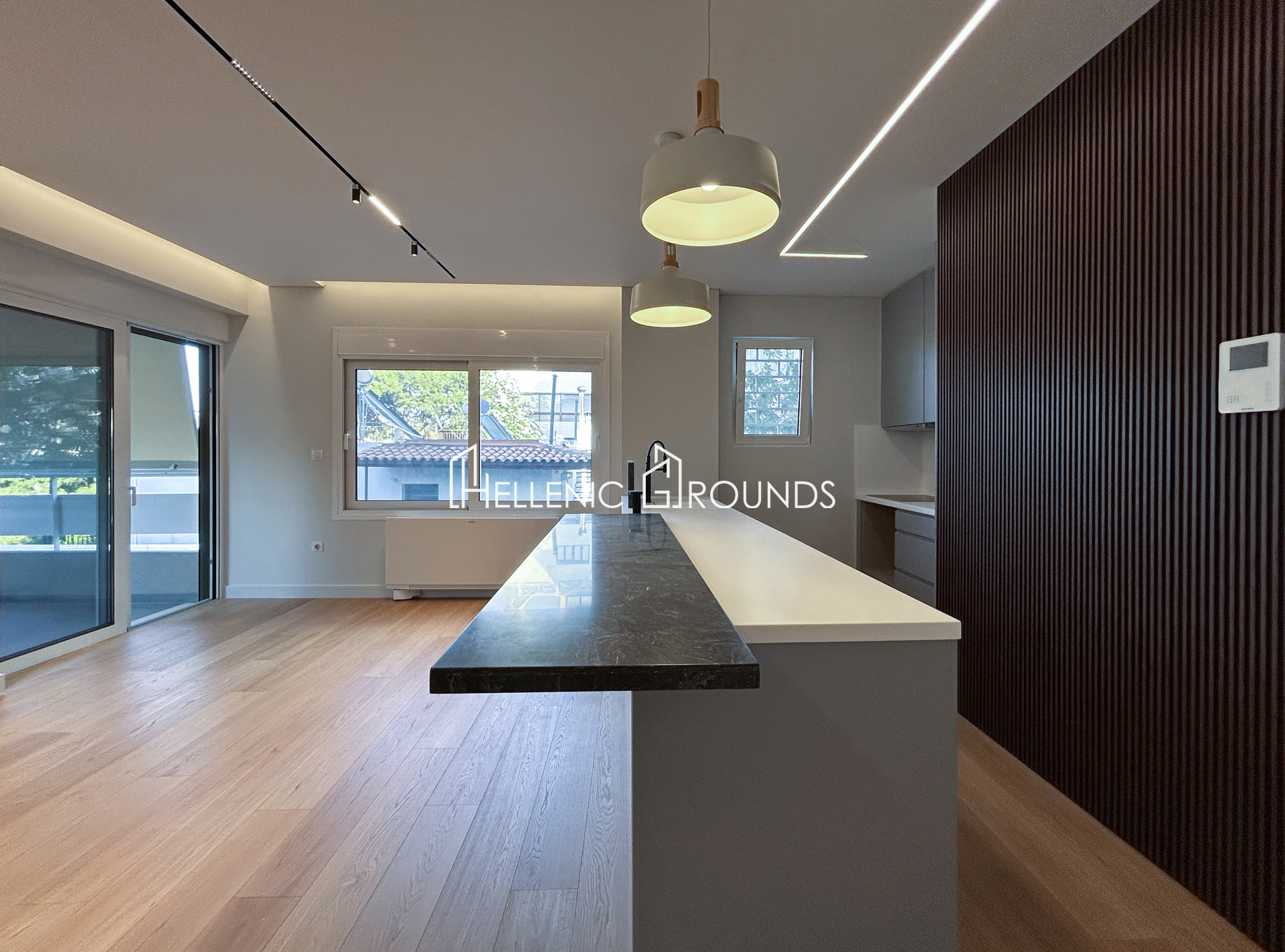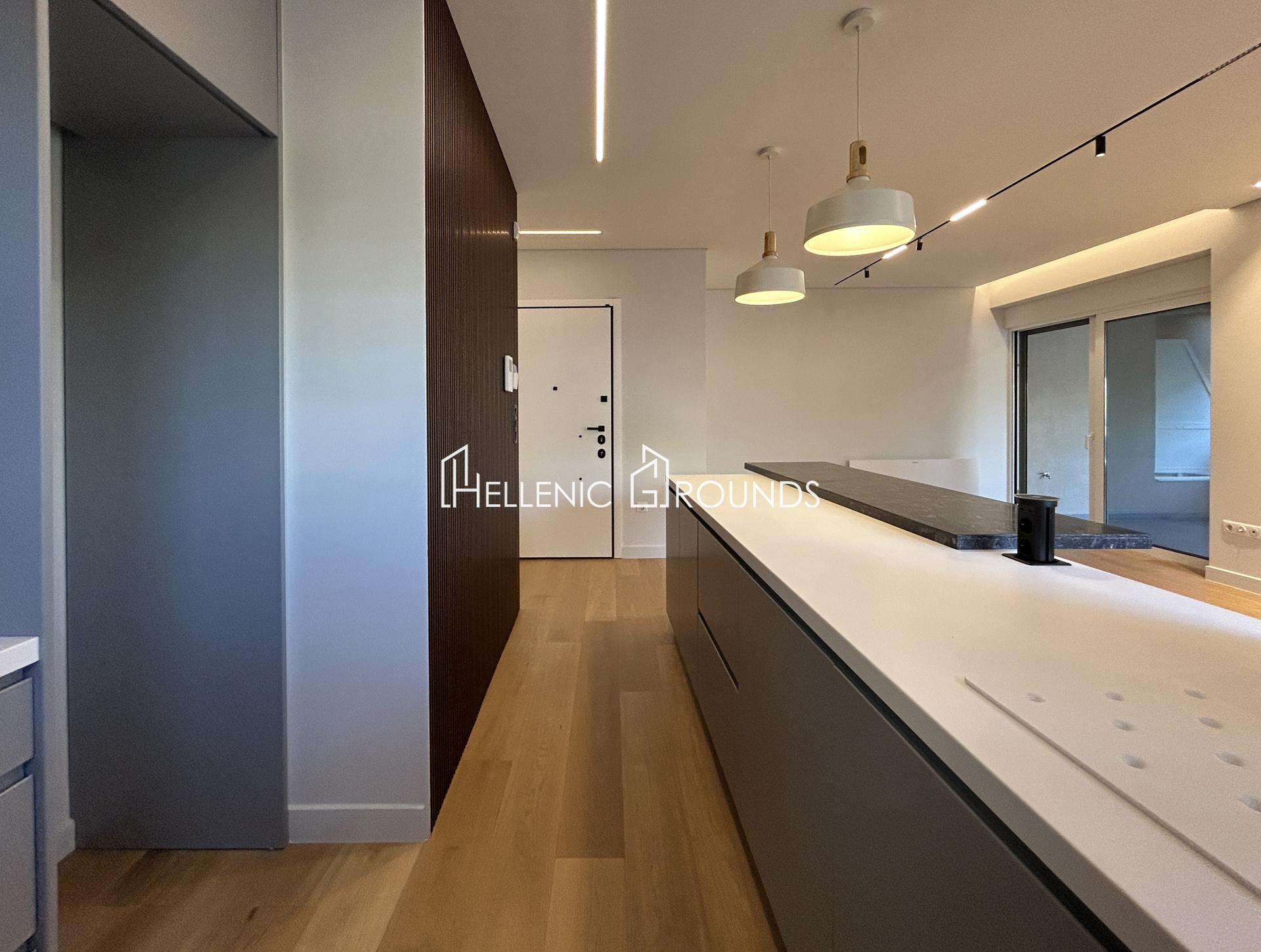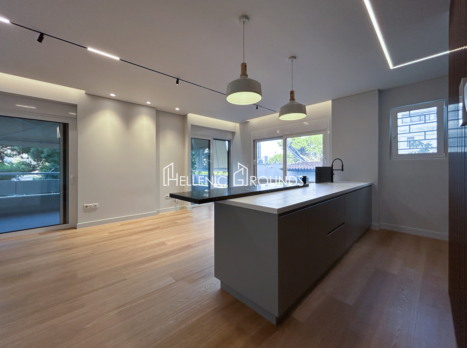 Situated on the 1st floor, this fully renovated 73 sqm apartment combines modern aesthetics with everyday comfort. It features two bedrooms, one bathroom, and bright interiors with large balconies that offer privacy and views of lush greenery.