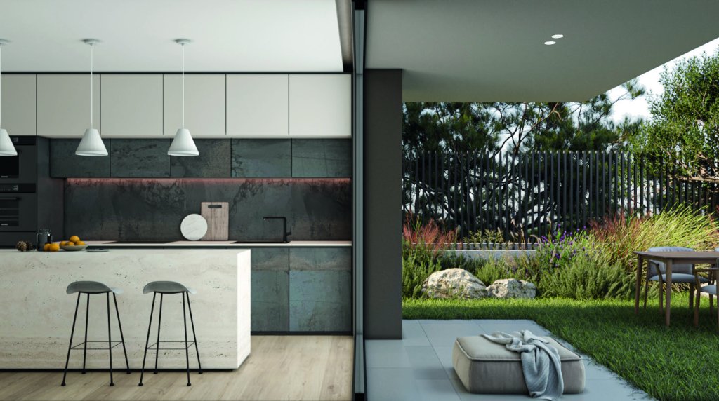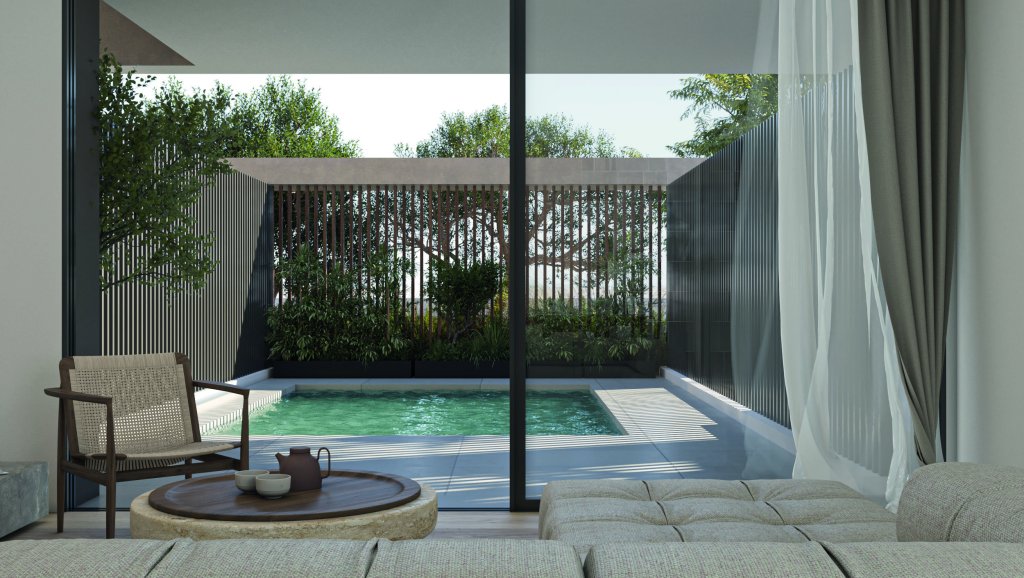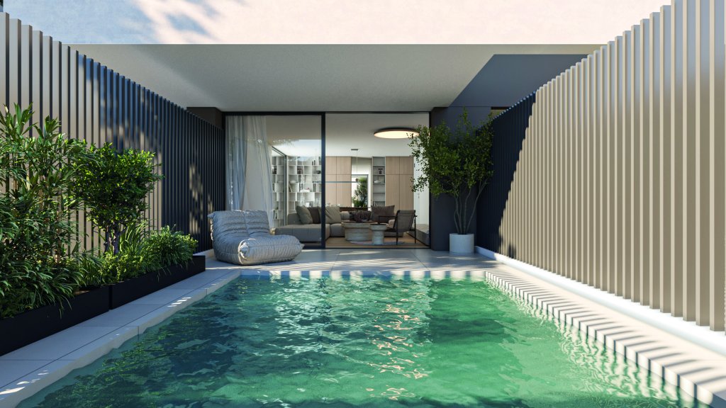 Outdoor living is a key highlight, with a private garden and swimming pool creating a resort-style atmosphere, perfect for relaxation and entertaining. The residence also includes a storage room and private parking spaces, ensuring practicality alongside luxury.