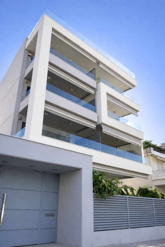 This 107 sqm apartment is located on the 3rd floor of a contemporary residential building in Kato Glyfada, within walking distance of the beach. The building permit dates to 2010, with first occupancy in 2013. The apartment is bright and through (dual aspect), offering excellent natural light and cross ventilation throughout.